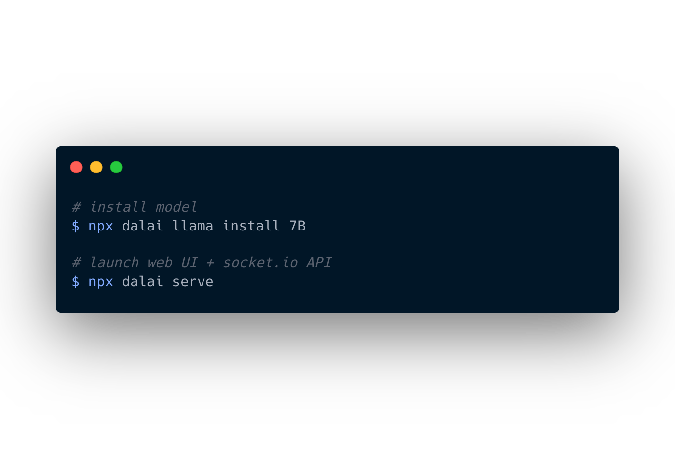 De hecho esta semana se ha hecho muy conocido un paquete llamado Dalai, a modo de hacer el juego de palabras Dalai LLaMA, que es un paquete de npm de Nodejs, que te permite probar estos modelos en tu laptop, con un simple npm install: